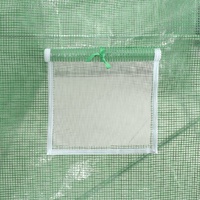 This spacious greenhouse can accommodate a considerable number of fruits, vegetables and plants. It is ideal for protecting your plants from adverse weather conditions. Durable PE cover: Polyethylene (PE) is the most widely used plastic material. It is UV-resistant, weather-resistant, anti-tear, lightweight, and easy to maintain. It also protects your plants against the damage from birds while offering heat preservation.Sturdy frame: Steel is an exceptionally hard and strong material. It offers sturdiness and stability. Galvanisation provides better protection against corrosion and is useful for products that'll be used outdoors as well as in harsh environments.Practical design: The plant house is designed for easy access and optimized air circulation thanks to its zippered roll-up door and 4 side roll-up mesh windows. Good to know:We recommend adding the foundation for added sturdiness. The roof of the greenhouse cannot withstand heavy snowfall.