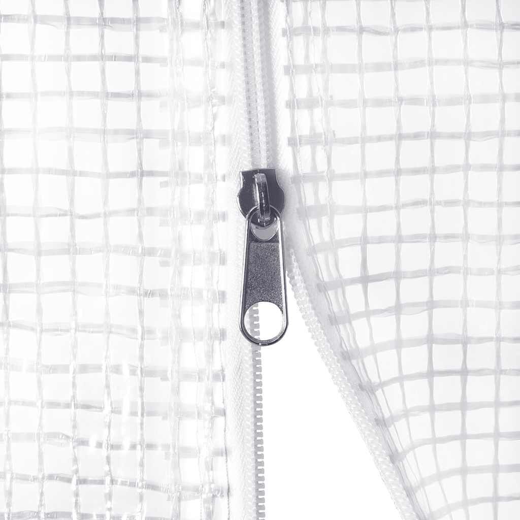 This spacious greenhouse can accommodate a considerable number of fruits, vegetables and plants. It is ideal for protecting your plants from adverse weather conditions. Durable PE cover: Polyethylene (PE) is the most widely used plastic material. It is UV-resistant, weather-resistant, anti-tear, lightweight, and easy to maintain. It also protects your plants against the damage from birds while offering heat preservation.Sturdy frame: Steel is an exceptionally hard and strong material. It offers sturdiness and stability. Galvanisation provides better protection against corrosion and is useful for products that'll be used outdoors as well as in harsh environments.Practical design: The plant house is designed for easy access and optimized air circulation thanks to its zippered roll-up door and 4 side roll-up mesh windows. Good to know:We recommend adding the foundation for added sturdiness. The roof of the greenhouse cannot withstand heavy snowfall.