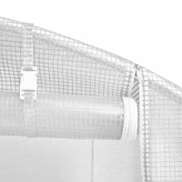 This spacious greenhouse can accommodate a considerable number of fruits, vegetables and plants. It is ideal for protecting your plants from adverse weather conditions. Durable PE cover: Polyethylene (PE) is the most widely used plastic material. It is UV-resistant, weather-resistant, anti-tear, lightweight, and easy to maintain. It also protects your plants against the damage from birds while offering heat preservation.Sturdy frame: Steel is an exceptionally hard and strong material. It offers sturdiness and stability. Galvanisation provides better protection against corrosion and is useful for products that'll be used outdoors as well as in harsh environments.Practical design: The plant house is designed for easy access and optimized air circulation thanks to its zippered roll-up door and 4 side roll-up mesh windows. Good to know:We recommend adding the foundation for added sturdiness. The roof of the greenhouse cannot withstand heavy snowfall.