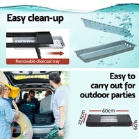 What could be better than an outdoor BBQ in the summer? The Grillz Foldable BBQ Grill is the product to have this season, whether you're planning an outdoor feast or you need a quick cooking solution on outdoor. It features a durable black steel base with food-grade stainless steel racks for delicious grilled meat and vegetables. Plus, two extra food trays for placing condiments, food. It includes a removable ashtray for easy cleaning and maintenance. It ensure good ventilation at the bottom that allows oxygen to flow in and feed the fire. Get your grill on this summer with a Grillz Foldable BBQ Grill!
