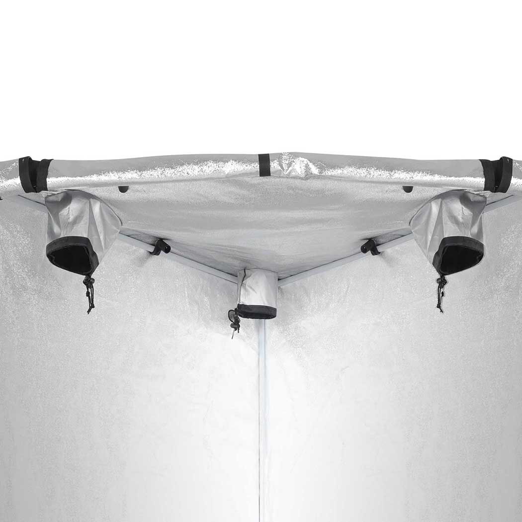 The exterior is designed with 600D Oxford cloth, it effectively resists harmful UV rays. Oxford cloth feels so soft and smooth to touch yet extremely tough for heavy use. Apart from its quality oxford fabric is highly breathable, it ensures airflow within. The entire frame of the tent is made of stainless steel, designed to stay firm in its place. The structure is connected with heavy-duty corner connectors, which enhances its stability. The inner lining is coated with aluminium foil. aluminium forms a conductive surface which helps promote plant growth. To improve its durability removable waterproof floor tray is provided, straps are provided within to fix the tray to the surface. It adds an extra layer of protection to the plants. The grow tent effectively provides all-round protection to the plants, saving them from all outside damaging effects.