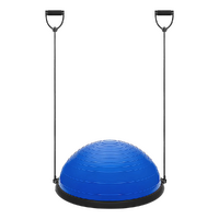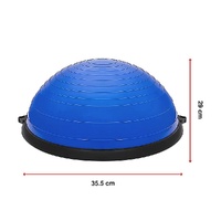 The half-sphere gym balance ball is manufactured by Randy Travis Machinery, a premier designer of rugged outdoor and sports equipment. This ball is gym-tough with a special anti-skid surface, and a free air pump is included so you're never at less than optimal inflation.