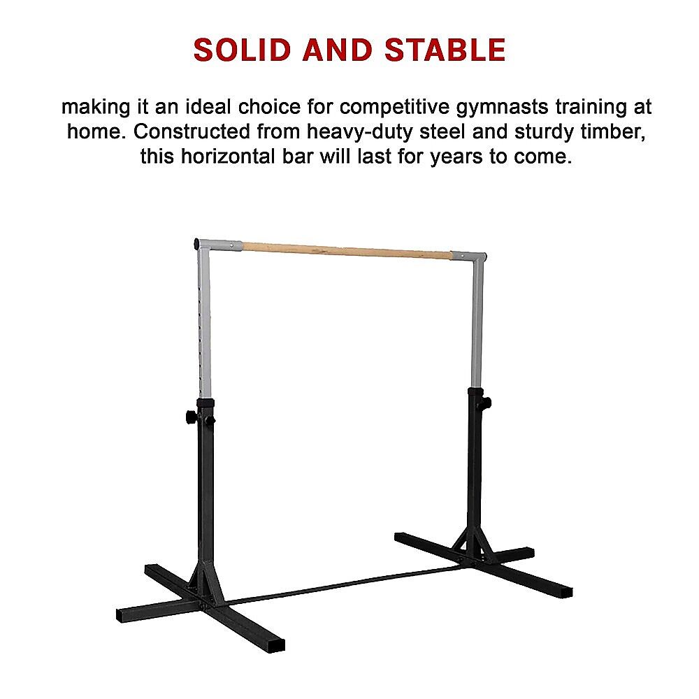 $474.69Whether your child is a serious gymnast or just wants to have fun, this kids' horizontal gymnastics bar by Randy Travis Machinery is just the ticket. Putting safety first, this training bar is solid and stable, making it an ideal choice for competitive gymnasts training at home. Constructed from heavy-duty steel and sturdy timber, this horizontal bar will last for years to come. With its four knobs, this horizontal bar is easily adjustable for kids of all ages.