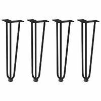 These hairpin legs for coffee tables combine form and function. It's an ideal choice for customising your coffee table. Durable material: This hairpin table leg is made of solid powder-coated steel, making it sturdy and long-lasting enough to support a heavy tabletop.Practical design: This hairpin table leg includes adjustable foot levellers, ensuring stability even on uneven floors and minimising floor scratches. Furthermore, the bracket incorporates pre-drilled holes and delivery-included screws for attaching the leg to the tabletop (not included), simplifying the assembly process.Modern aesthetics: The hairpin table leg offers a sleek and contemporary look. Its clean lines and geometric design enhance the overall appearance of the furniture. Good to know:The delivery only contains table legs, the tabletop is not included.
