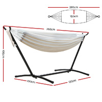 $109.97Love hanging around the patio? Or the garden? Or indoors? Our Gardeon Hammock with Stand will get you comfortable in no time at all. Made from 100% cotton fabric, our hammock is soft, comfortable and well-ventilated. Plus, the strong and sturdy stand is constructed of heavy-duty steel with a powder-coated finish for durability and reliability in all kinds of weather use. Not least, it is can also be adjusted for six different height levels with no tools needed. Simple and easy in every way.