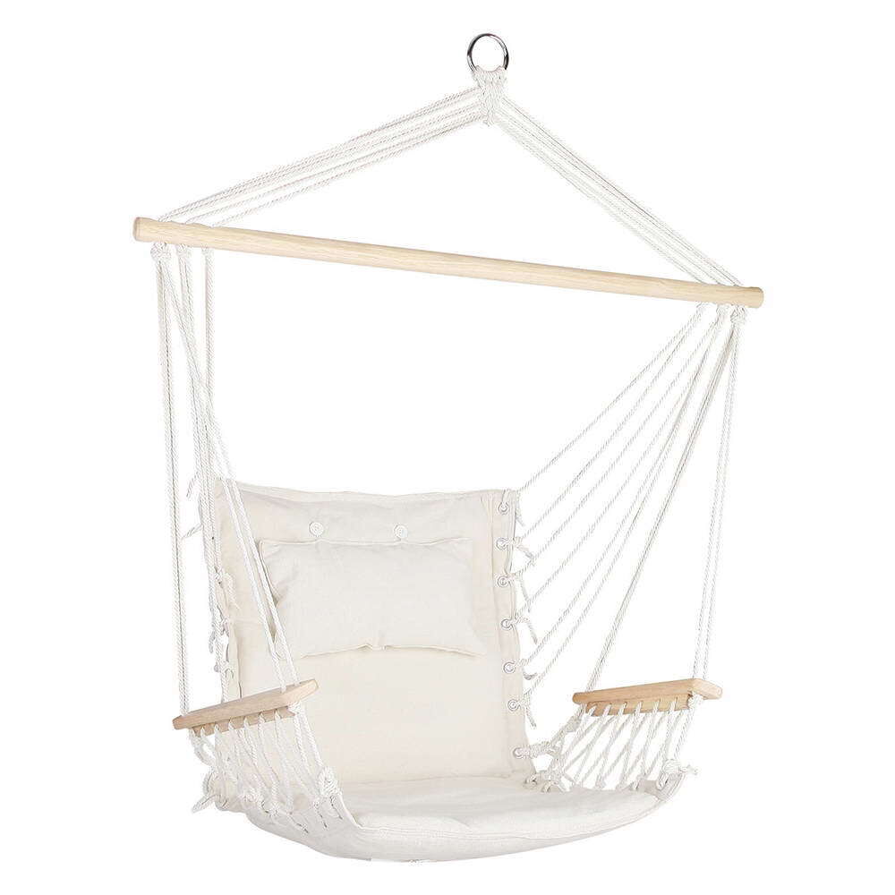 We want it to be a long lasting hammock at your home. Made of solid timber rail with quality polyester cotton, you can hang it at your backyard as a chilling spot for reading books or taking a nap. Its durable strings can hold up to 120kg that would suit almost everyone - anyone can chill any time. Comes with a soft pillow and padded seat, it is a nice comfy spot to chill at with a book or just listening to songs. Designed with armrests that lets you rest on whenever you like. Very simple installation, you can take it with you to a barbecue or on a vacation. It can be attached to trees, ceilings or pergola beams.
