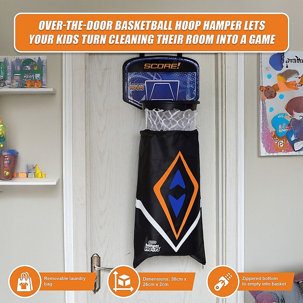 What kid can resist trying to nail a three-pointer from a corner clear across his room? Not many. You'll find your kids' rooms cleaner, your kids happier, and receive no more frowny-faces when you tell them it's time to clean up their room. In fact, you'll probably not have to tell them at all!