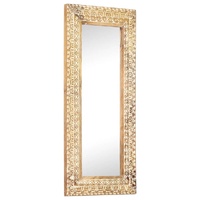This hand-carved wooden mirror is more than a practical day-to-day object, it is also an attractive decoration for your home. This mirror is made of solid mango wood, a tropical hardwood with the strength to bear the weight. It also stands the wear and tear of time, making it sturdy and durable. The craftsmanship and the beautiful wood grains make every piece unique and slightly different from the next. Additionally, the hand-carved pattern adds to its beauty. Important note: Colours and grains vary from piece to piece, making each piece unique. The delivery is random as well.