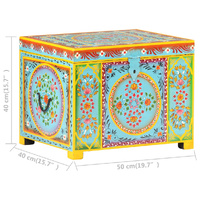 With this unique wooden storage box, you can easily keep your house tidy by storing away your cushions, pillows, blankets, toys, and other items you'd like to keep out of sight. This colourful box is hand-painted with decorative details, making it practical for storage, and also beautiful for displaying in your room. With the large storage room inside the wooden box, you can easily keep clothes, pillows, blankets, and other items well organised and within reach. The storage box is made of solid mango wood, a tropical hardwood. It has the strength to bear the weight and also stand the wear and tear of time. Additionally, the exquisite craftsmanship makes every piece slightly different from the next. Important note: The colours vary from piece to piece, making each piece unique. The delivery is random, ensuring the exclusivity and individuality of your product.