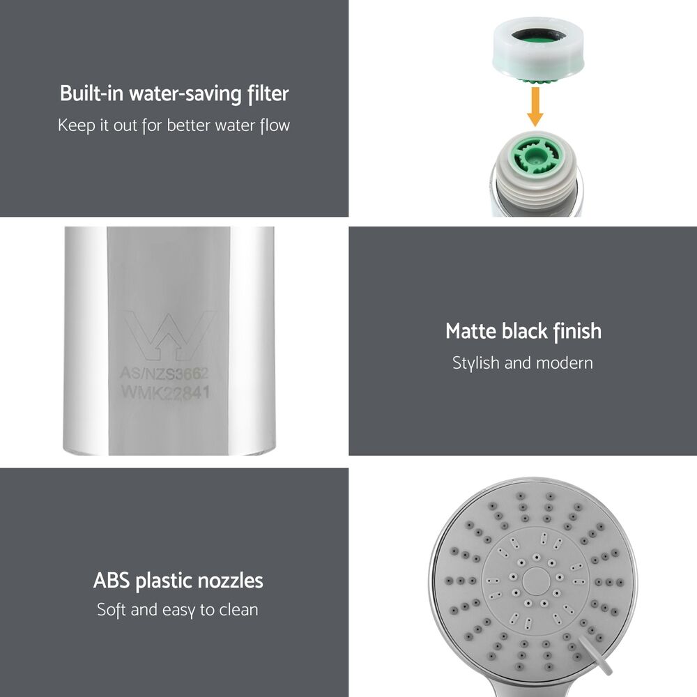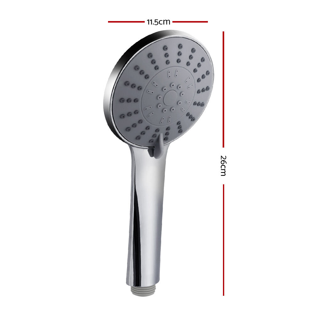 Experience luxuriously soothing showers from our Handheld Shower Head. Made from premium ABS construction with a premium chrome finish, the showerhead is durable and lightweight for long-lasting showers. Its stylish design will add elegance and value to any bathroom. A built-in water-saving filter will save you money and can be removed for greater water flow. The high-pressure water flow will have you relaxing in no time and you can take your pick of five spray modes from rain to massage. The 4.5 handheld shower head can be used to remove the stress of the day from all around the body. The G 1/2 wall end is Australian Standard, allowing it to fit most standard shower equipment. Get the spa treatment you deserve with the Handheld Shower Head.