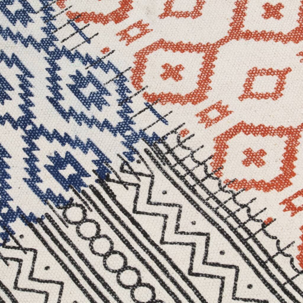 With our handmade printed Kilim rug, add a unique piece to your interior. The area rug is a perfect fit in your living room, bedroom or office. The floor rug is handwoven from 100% cotton, giving it a natural look and feel. The cotton rug is printed with an attractive pattern. It is stonewashed, giving it a vintage look, making it soft and flexible. Please note: Slight differences between every piece can be found due to the handmade nature of the product.