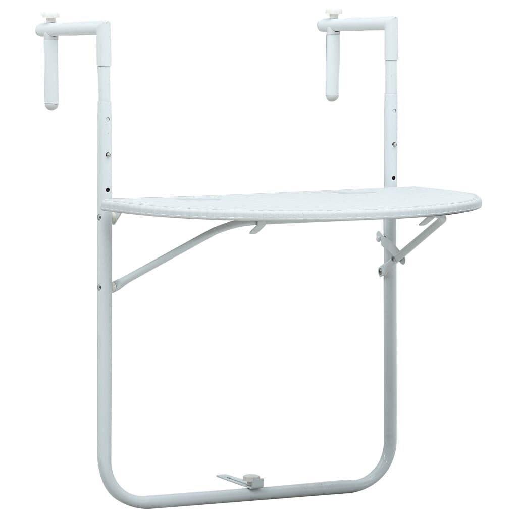 $63.91This hanging balcony table will make a great addition to your balcony, serving as a coffee table to place your drink or a convenient worktop to keep items such as garden tools and potted plants. Made of durable plastic, the tabletop is weather resistant and easy to clean. Its rattan look design adds a touch of natural charm to your balcony. With a sturdy steel frame, the table is highly stable. Additionally, the height can be adjusted in 3 levels to satisfy your requirements. The table can be easily folded to save space when not in use.