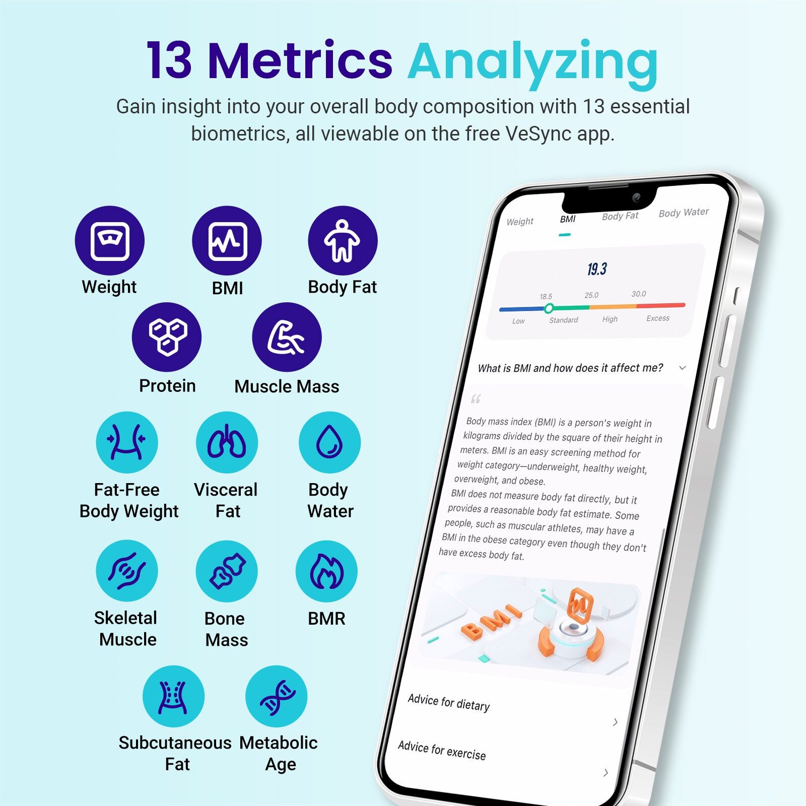 Bundled with the Etekcity Scale for Body Weight and Fat Percentage in sleek black. This advanced scale offers custom-tailored health plans, putting you in control of your wellness. With a weight capacity of 180 kg, it's designed to accommodate diverse needs, and its high precision ensures accurate results, even for light items as delicate as 100g.