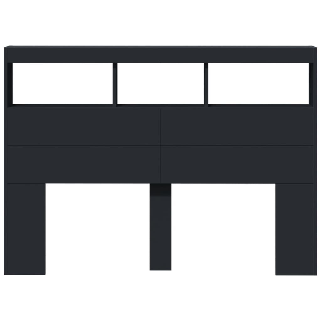 This headboard cabinet with LED, featuring a stylish design, gives your bed frame a stunning modern touch and is perfectly suitable in any bedroom. Durable material: The engineered wood is of exceptional quality with smooth surface and also features strength, stability and resistance to moisture.RGB LED lights: The bed headboard is equipped with vibrant RGB LED lights. With various customisable menus, you can effortlessly change the colour of the lights and even set them to adjust automatically. These LED lights not only enhance the contemporary look of the bed header but also add to its trendy appeal.Ample storage space: Featuring compartments and a sturdy top, the bed headboard cabinet is perfect for displaying your books, decorative items, picture frames and alarm clocks.Excellent support: The headboard for bed provides you with excellent back support when you sit up in bed to read or watch TV. Good to know:The delivery includes LED headboard only. The bed frame and mattress are not included. You can check our shop for the matching frames and mattresses.The product has a USB connector that requires a certified 5V USB power source (not included). Warning:To prevent it from tipping over, this product must be used with the provided wall attachment device.