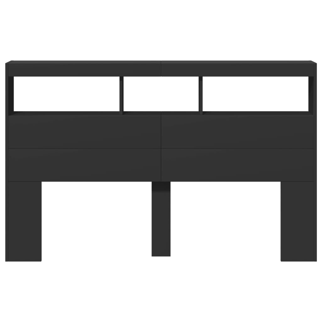 This headboard cabinet with LED, featuring a stylish design, gives your bed frame a stunning modern touch and is perfectly suitable in any bedroom. Durable material: The engineered wood is of exceptional quality with smooth surface and also features strength, stability and resistance to moisture.RGB LED lights: The bed headboard is equipped with vibrant RGB LED lights. With various customisable menus, you can effortlessly change the colour of the lights and even set them to adjust automatically. These LED lights not only enhance the contemporary look of the bed header but also add to its trendy appeal.Ample storage space: Featuring compartments and a sturdy top, the bed headboard cabinet is perfect for displaying your books, decorative items, picture frames and alarm clocks.Excellent support: The headboard for bed provides you with excellent back support when you sit up in bed to read or watch TV. Good to know:The delivery includes LED headboard only. The bed frame and mattress are not included. You can check our shop for the matching frames and mattresses.The product has a USB connector that requires a certified 5V USB power source (not included). Warning:To prevent it from tipping over, this product must be used with the provided wall attachment device.