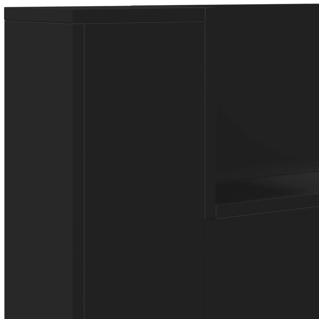This headboard cabinet with LED, featuring a stylish design, gives your bed frame a stunning modern touch and is perfectly suitable in any bedroom. Durable material: The engineered wood is of exceptional quality with smooth surface and also features strength, stability and resistance to moisture.RGB LED lights: The bed headboard is equipped with vibrant RGB LED lights. With various customisable menus, you can effortlessly change the colour of the lights and even set them to adjust automatically. These LED lights not only enhance the contemporary look of the bed header but also add to its trendy appeal.Ample storage space: Featuring an open shelf, the bed headboard cabinet is perfect for displaying your books, decorative items, picture frames and alarm clocks.Excellent support: The headboard for bed provides you with excellent back support when you sit up in bed to read or watch TV. Good to know:The delivery includes LED headboard only. The bed frame and mattress are not included. You can check our shop for the matching frames and mattresses.The product has a USB connector that requires a certified 5V USB power source (not included). Warning:To prevent it from tipping over, this product must be used with the provided wall attachment device.