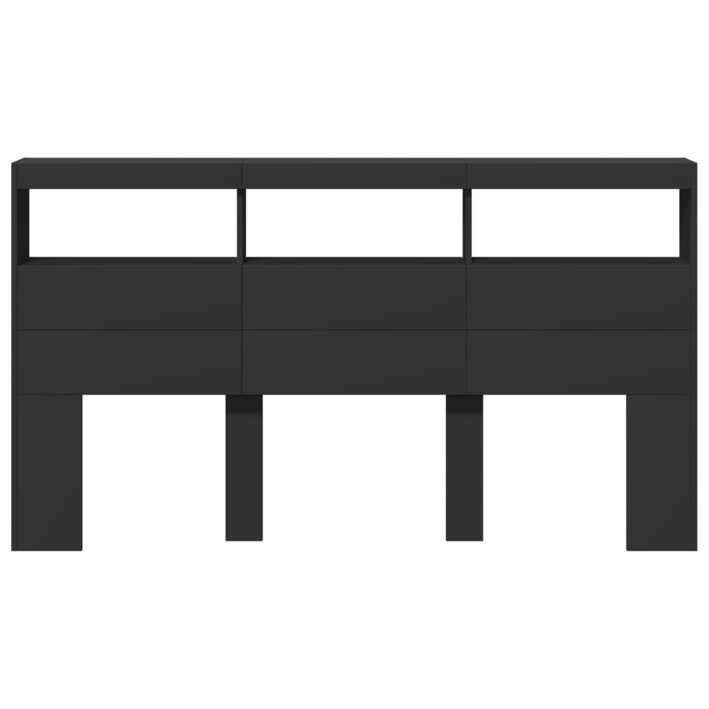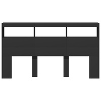 This headboard cabinet with LED, featuring a stylish design, gives your bed frame a stunning modern touch and is perfectly suitable in any bedroom. Durable material: The engineered wood is of exceptional quality with smooth surface and also features strength, stability and resistance to moisture.RGB LED lights: The bed headboard is equipped with vibrant RGB LED lights. With various customisable menus, you can effortlessly change the colour of the lights and even set them to adjust automatically. These LED lights not only enhance the contemporary look of the bed header but also add to its trendy appeal.Ample storage space: Featuring compartments and a sturdy top, the bed headboard cabinet is perfect for displaying your books, decorative items, picture frames and alarm clocks.Excellent support: The headboard for bed provides you with excellent back support when you sit up in bed to read or watch TV. Good to know:The delivery includes LED headboard only. The bed frame and mattress are not included. You can check our shop for the matching frames and mattresses.The product has a USB connector that requires a certified 5V USB power source (not included). Warning:To prevent it from tipping over, this product must be used with the provided wall attachment device.