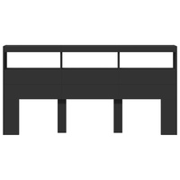 This headboard cabinet with LED, featuring a stylish design, gives your bed frame a stunning modern touch and is perfectly suitable in any bedroom. Durable material: The engineered wood is of exceptional quality with smooth surface and also features strength, stability and resistance to moisture.RGB LED lights: The bed headboard is equipped with vibrant RGB LED lights. With various customisable menus, you can effortlessly change the colour of the lights and even set them to adjust automatically. These LED lights not only enhance the contemporary look of the bed header but also add to its trendy appeal.Ample storage space: Featuring compartments and a sturdy top, the bed headboard cabinet is perfect for displaying your books, decorative items, picture frames and alarm clocks.Excellent support: The headboard for bed provides you with excellent back support when you sit up in bed to read or watch TV. Good to know:The delivery includes LED headboard only. The bed frame and mattress are not included. You can check our shop for the matching frames and mattresses.The product has a USB connector that requires a certified 5V USB power source (not included). Warning:To prevent it from tipping over, this product must be used with the provided wall attachment device.