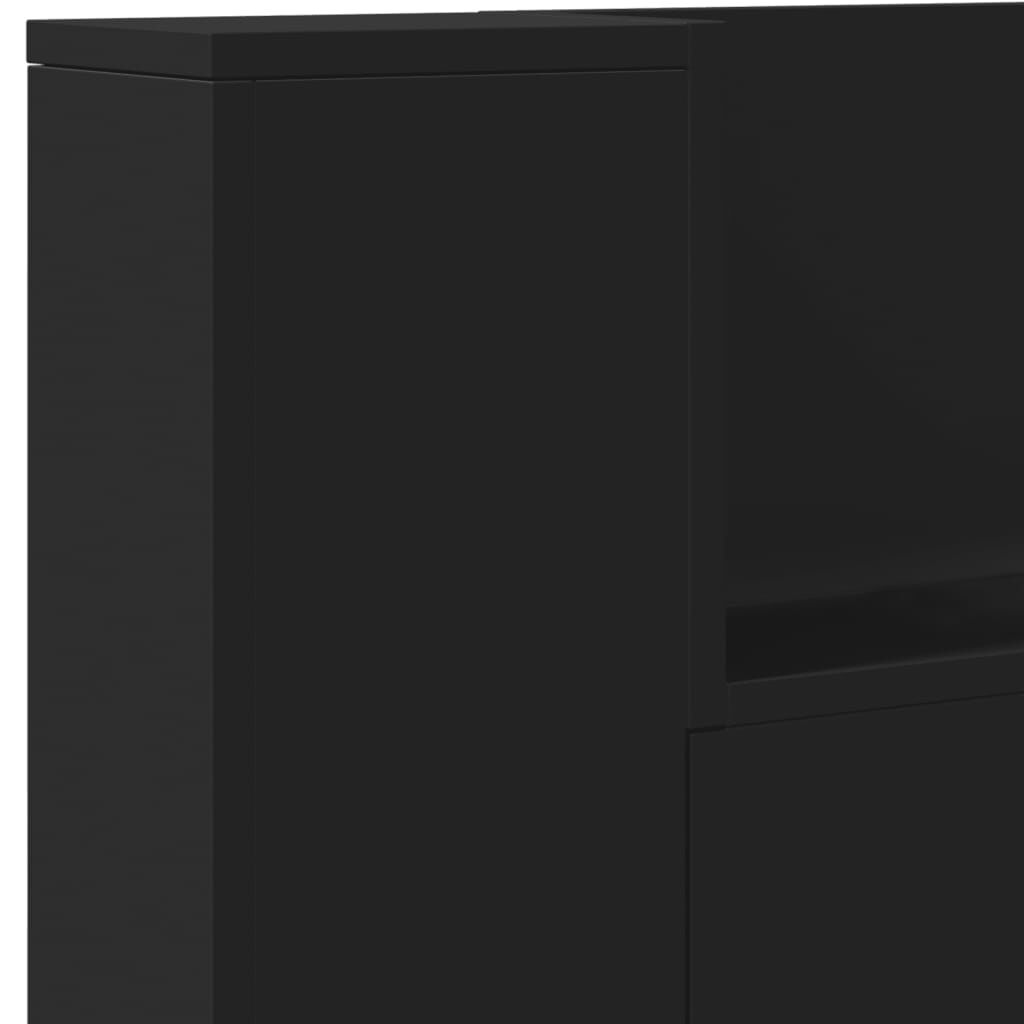 This headboard cabinet with LED, featuring a stylish design, gives your bed frame a stunning modern touch and is perfectly suitable in any bedroom. Durable material: The engineered wood is of exceptional quality with smooth surface and also features strength, stability and resistance to moisture.RGB LED lights: The bed headboard is equipped with vibrant RGB LED lights. With various customisable menus, you can effortlessly change the colour of the lights and even set them to adjust automatically. These LED lights not only enhance the contemporary look of the bed header but also add to its trendy appeal.Ample storage space: Featuring an open shelf, the bed headboard cabinet is perfect for displaying your books, decorative items, picture frames and alarm clocks.Excellent support: The headboard for bed provides you with excellent back support when you sit up in bed to read or watch TV. Good to know:The delivery includes LED headboard only. The bed frame and mattress are not included. You can check our shop for the matching frames and mattresses.The product has a USB connector that requires a certified 5V USB power source (not included). Warning:To prevent it from tipping over, this product must be used with the provided wall attachment device.