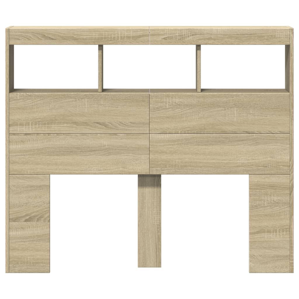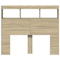 This headboard cabinet with LED, featuring a stylish design, gives your bed frame a stunning modern touch and is perfectly suitable in any bedroom. Durable material: The engineered wood is of exceptional quality with smooth surface and also features strength, stability and resistance to moisture.RGB LED lights: The bed headboard is equipped with vibrant RGB LED lights. With various customisable menus, you can effortlessly change the colour of the lights and even set them to adjust automatically. These LED lights not only enhance the contemporary look of the bed header but also add to its trendy appeal.Ample storage space: Featuring compartments and a sturdy top, the bed headboard cabinet is perfect for displaying your books, decorative items, picture frames and alarm clocks.Excellent support: The headboard for bed provides you with excellent back support when you sit up in bed to read or watch TV. Good to know:The delivery includes LED headboard only. The bed frame and mattress are not included. You can check our shop for the matching frames and mattresses.The product has a USB connector that requires a certified 5V USB power source (not included). Warning:To prevent it from tipping over, this product must be used with the provided wall attachment device.