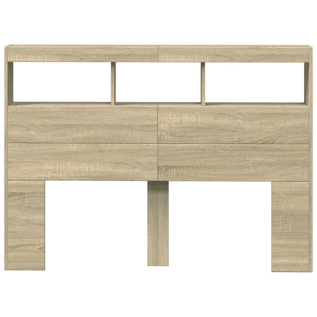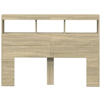 This headboard cabinet with LED, featuring a stylish design, gives your bed frame a stunning modern touch and is perfectly suitable in any bedroom. Durable material: The engineered wood is of exceptional quality with smooth surface and also features strength, stability and resistance to moisture.RGB LED lights: The bed headboard is equipped with vibrant RGB LED lights. With various customisable menus, you can effortlessly change the colour of the lights and even set them to adjust automatically. These LED lights not only enhance the contemporary look of the bed header but also add to its trendy appeal.Ample storage space: Featuring compartments and a sturdy top, the bed headboard cabinet is perfect for displaying your books, decorative items, picture frames and alarm clocks.Excellent support: The headboard for bed provides you with excellent back support when you sit up in bed to read or watch TV. Good to know:The delivery includes LED headboard only. The bed frame and mattress are not included. You can check our shop for the matching frames and mattresses.The product has a USB connector that requires a certified 5V USB power source (not included). Warning:To prevent it from tipping over, this product must be used with the provided wall attachment device.