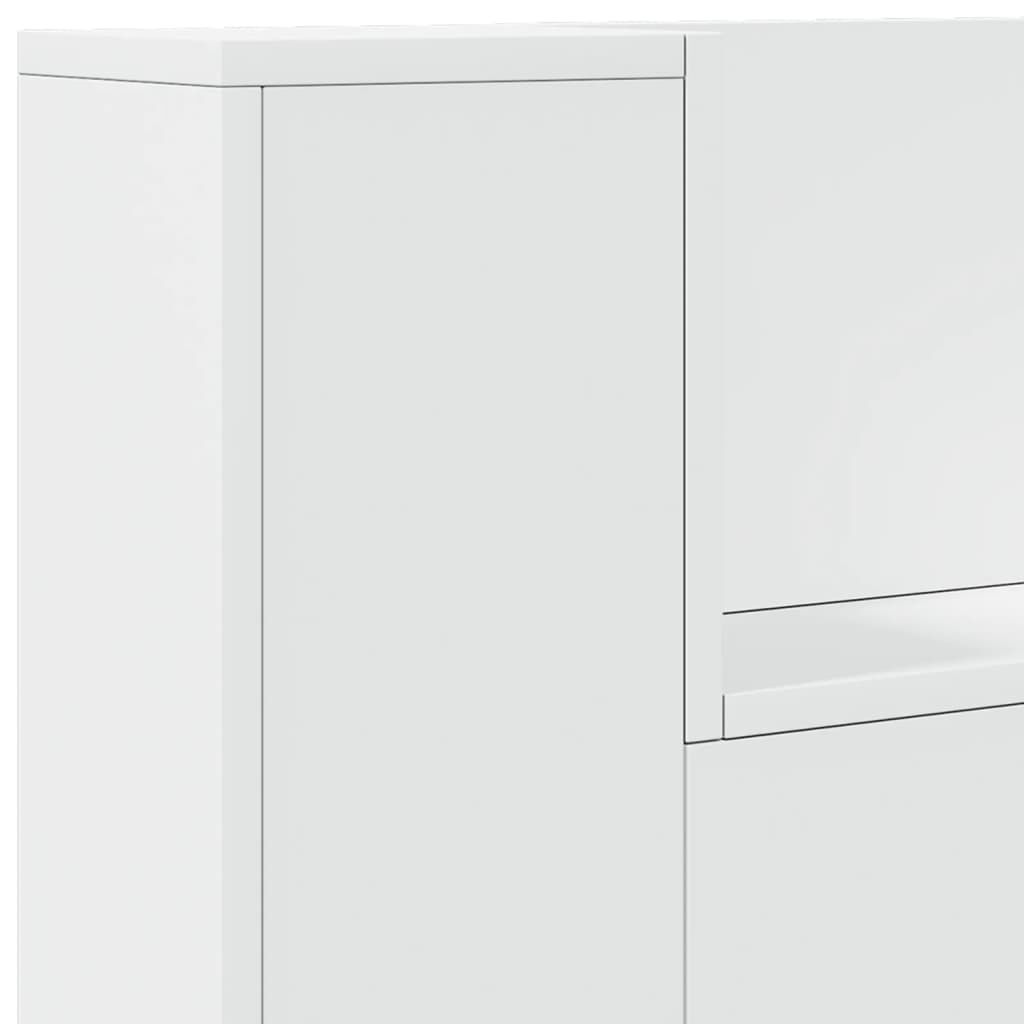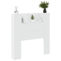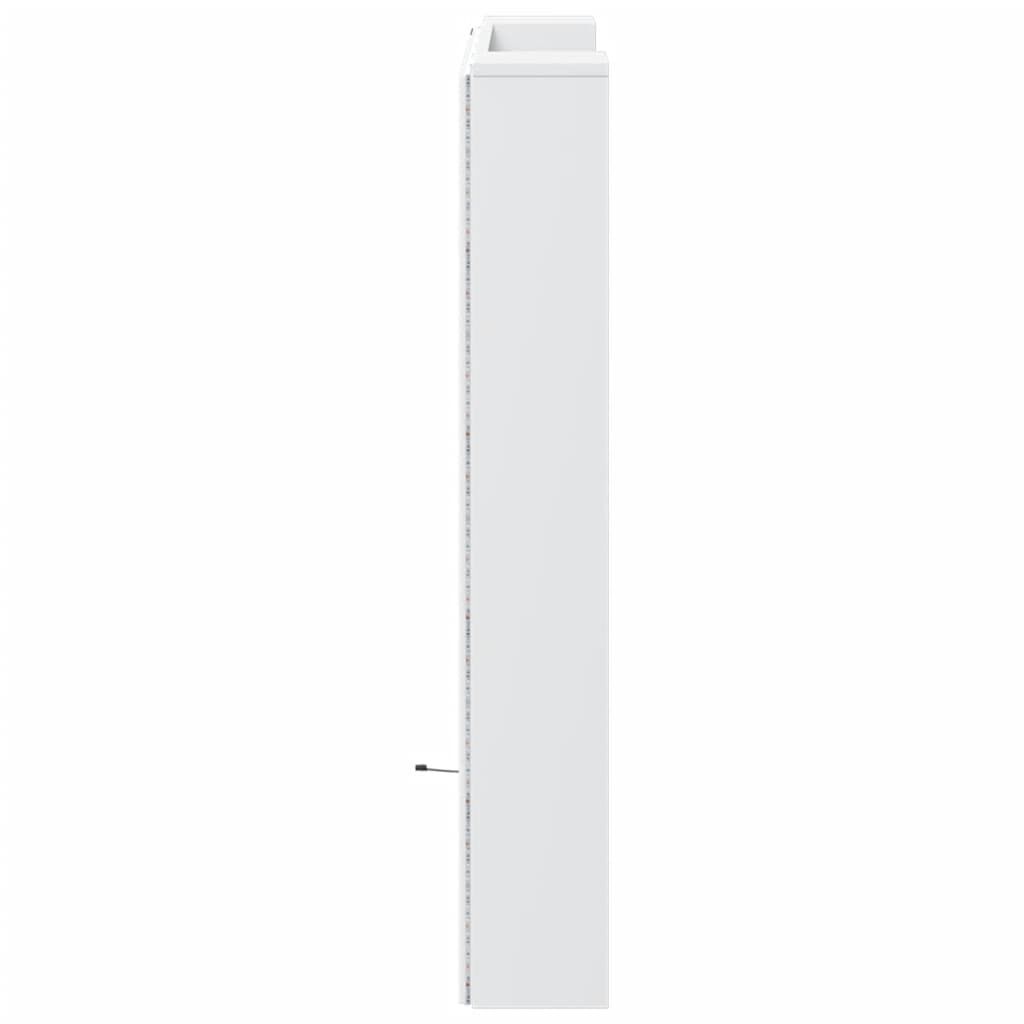 This headboard cabinet with LED, featuring a stylish design, gives your bed frame a stunning modern touch and is perfectly suitable in any bedroom. Durable material: The engineered wood is of exceptional quality with smooth surface and also features strength, stability and resistance to moisture.RGB LED lights: The bed headboard is equipped with vibrant RGB LED lights. With various customisable menus, you can effortlessly change the colour of the lights and even set them to adjust automatically. These LED lights not only enhance the contemporary look of the bed header but also add to its trendy appeal.Ample storage space: Featuring an open shelf, the bed headboard cabinet is perfect for displaying your books, decorative items, picture frames and alarm clocks.Excellent support: The headboard for bed provides you with excellent back support when you sit up in bed to read or watch TV. Good to know:The delivery includes LED headboard only. The bed frame and mattress are not included. You can check our shop for the matching frames and mattresses.The product has a USB connector that requires a certified 5V USB power source (not included). Warning:To prevent it from tipping over, this product must be used with the provided wall attachment device.