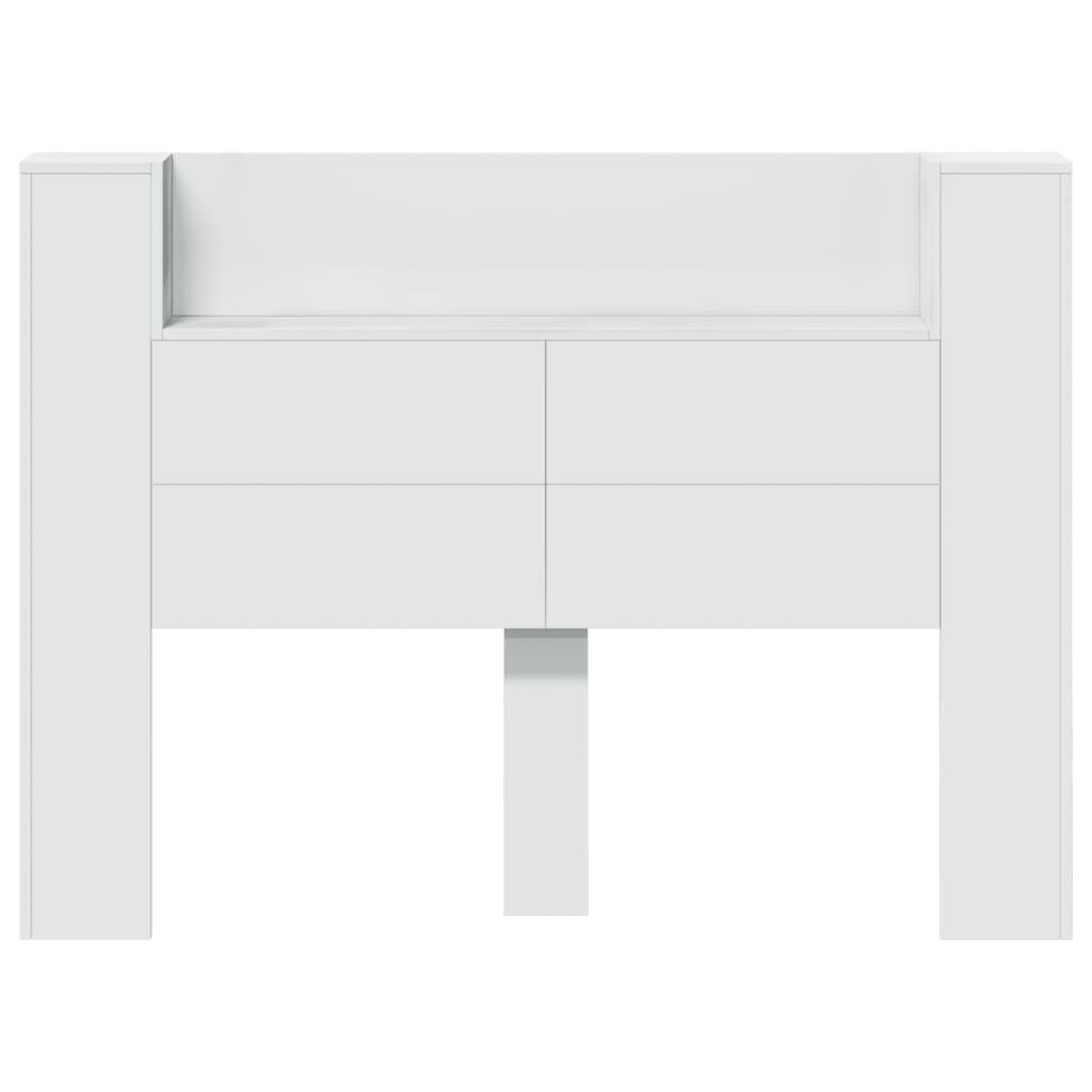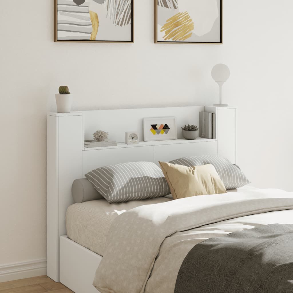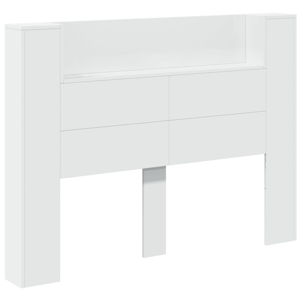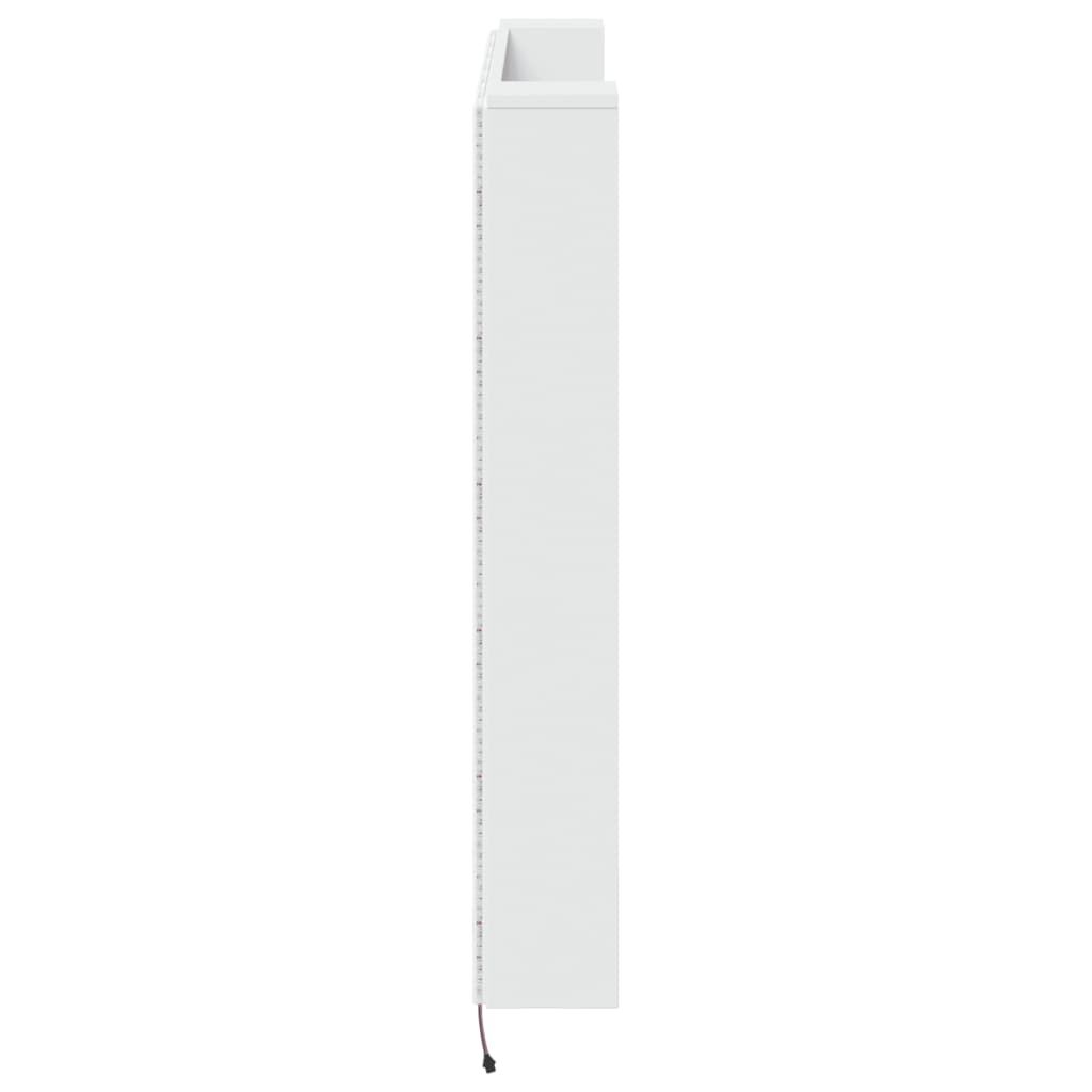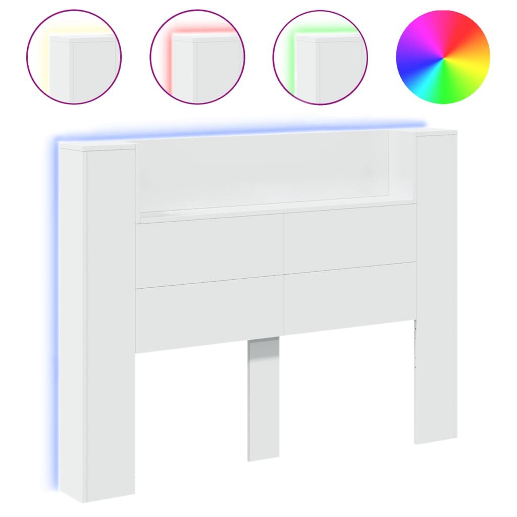 This headboard cabinet with LED, featuring a stylish design, gives your bed frame a stunning modern touch and is perfectly suitable in any bedroom. Durable material: The engineered wood is of exceptional quality with smooth surface and also features strength, stability and resistance to moisture.RGB LED lights: The bed headboard is equipped with vibrant RGB LED lights. With various customisable menus, you can effortlessly change the colour of the lights and even set them to adjust automatically. These LED lights not only enhance the contemporary look of the bed header but also add to its trendy appeal.Ample storage space: Featuring an open shelf, the bed headboard cabinet is perfect for displaying your books, decorative items, picture frames and alarm clocks.Excellent support: The headboard for bed provides you with excellent back support when you sit up in bed to read or watch TV. Good to know:The delivery includes LED headboard only. The bed frame and mattress are not included. You can check our shop for the matching frames and mattresses.The product has a USB connector that requires a certified 5V USB power source (not included). Warning:To prevent it from tipping over, this product must be used with the provided wall attachment device.