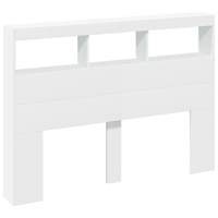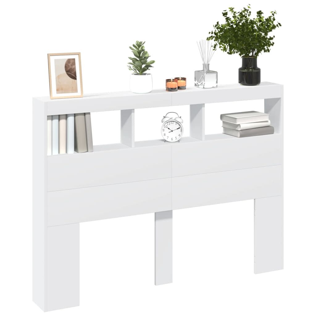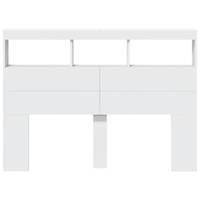 This headboard cabinet with LED, featuring a stylish design, gives your bed frame a stunning modern touch and is perfectly suitable in any bedroom. Durable material: The engineered wood is of exceptional quality with smooth surface and also features strength, stability and resistance to moisture.RGB LED lights: The bed headboard is equipped with vibrant RGB LED lights. With various customisable menus, you can effortlessly change the colour of the lights and even set them to adjust automatically. These LED lights not only enhance the contemporary look of the bed header but also add to its trendy appeal.Ample storage space: Featuring compartments and a sturdy top, the bed headboard cabinet is perfect for displaying your books, decorative items, picture frames and alarm clocks.Excellent support: The headboard for bed provides you with excellent back support when you sit up in bed to read or watch TV. Good to know:The delivery includes LED headboard only. The bed frame and mattress are not included. You can check our shop for the matching frames and mattresses.The product has a USB connector that requires a certified 5V USB power source (not included). Warning:To prevent it from tipping over, this product must be used with the provided wall attachment device.