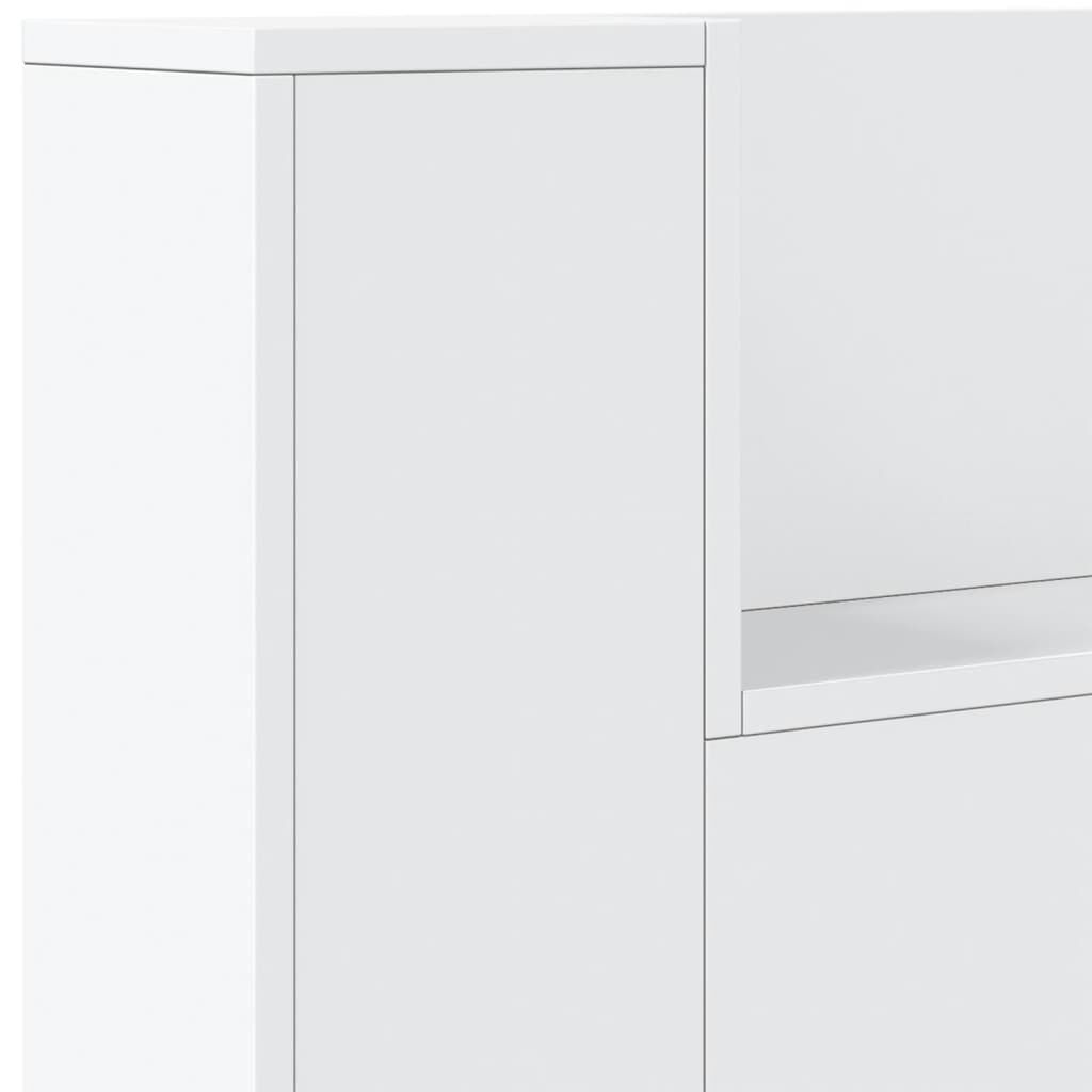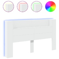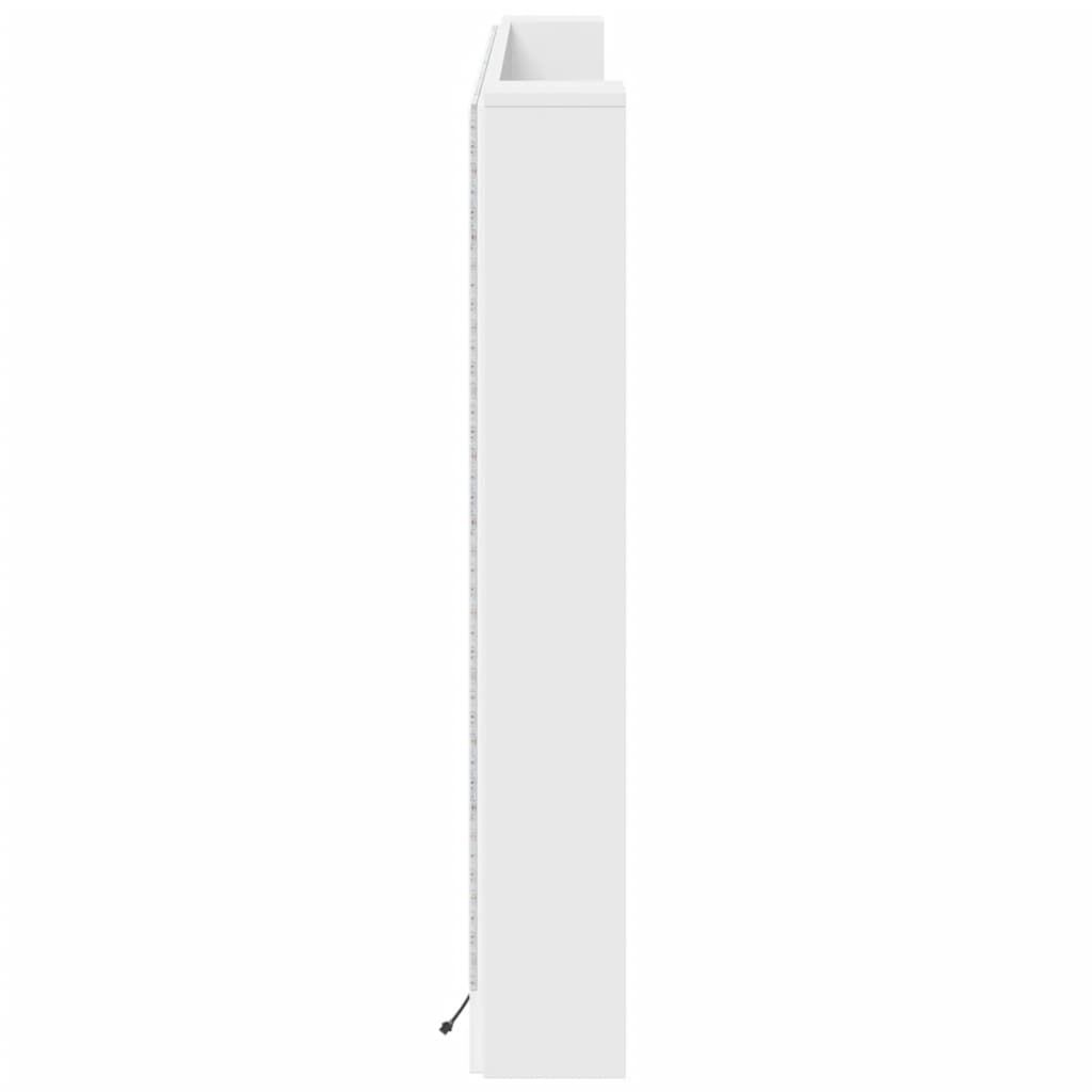This headboard cabinet with LED, featuring a stylish design, gives your bed frame a stunning modern touch and is perfectly suitable in any bedroom. Durable material: The engineered wood is of exceptional quality with smooth surface and also features strength, stability and resistance to moisture.RGB LED lights: The bed headboard is equipped with vibrant RGB LED lights. With various customisable menus, you can effortlessly change the colour of the lights and even set them to adjust automatically. These LED lights not only enhance the contemporary look of the bed header but also add to its trendy appeal.Ample storage space: Featuring an open shelf, the bed headboard cabinet is perfect for displaying your books, decorative items, picture frames and alarm clocks.Excellent support: The headboard for bed provides you with excellent back support when you sit up in bed to read or watch TV. Good to know:The delivery includes LED headboard only. The bed frame and mattress are not included. You can check our shop for the matching frames and mattresses.The product has a USB connector that requires a certified 5V USB power source (not included). Warning:To prevent it from tipping over, this product must be used with the provided wall attachment device.