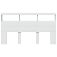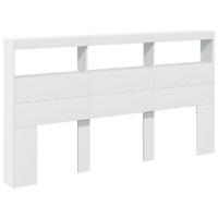 This headboard cabinet with LED, featuring a stylish design, gives your bed frame a stunning modern touch and is perfectly suitable in any bedroom. Durable material: The engineered wood is of exceptional quality with smooth surface and also features strength, stability and resistance to moisture.RGB LED lights: The bed headboard is equipped with vibrant RGB LED lights. With various customisable menus, you can effortlessly change the colour of the lights and even set them to adjust automatically. These LED lights not only enhance the contemporary look of the bed header but also add to its trendy appeal.Ample storage space: Featuring compartments and a sturdy top, the bed headboard cabinet is perfect for displaying your books, decorative items, picture frames and alarm clocks.Excellent support: The headboard for bed provides you with excellent back support when you sit up in bed to read or watch TV. Good to know:The delivery includes LED headboard only. The bed frame and mattress are not included. You can check our shop for the matching frames and mattresses.The product has a USB connector that requires a certified 5V USB power source (not included). Warning:To prevent it from tipping over, this product must be used with the provided wall attachment device.