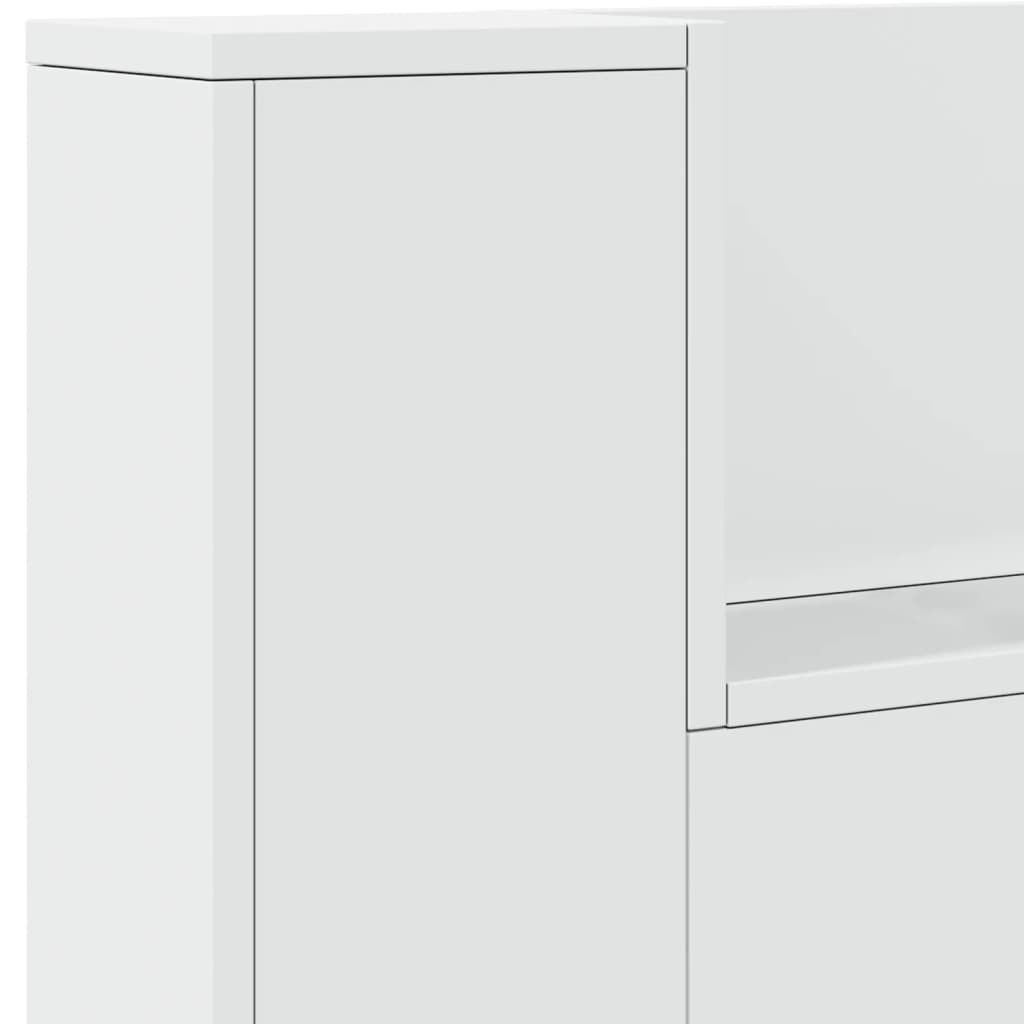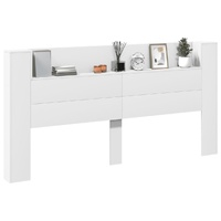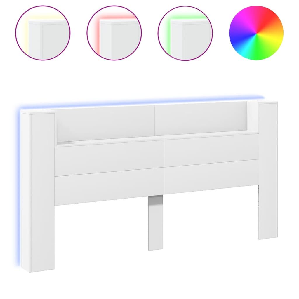 This headboard cabinet with LED, featuring a stylish design, gives your bed frame a stunning modern touch and is perfectly suitable in any bedroom. Durable material: The engineered wood is of exceptional quality with smooth surface and also features strength, stability and resistance to moisture.RGB LED lights: The bed headboard is equipped with vibrant RGB LED lights. With various customisable menus, you can effortlessly change the colour of the lights and even set them to adjust automatically. These LED lights not only enhance the contemporary look of the bed header but also add to its trendy appeal.Ample storage space: Featuring an open shelf, the bed headboard cabinet is perfect for displaying your books, decorative items, picture frames and alarm clocks.Excellent support: The headboard for bed provides you with excellent back support when you sit up in bed to read or watch TV. Good to know:The delivery includes LED headboard only. The bed frame and mattress are not included. You can check our shop for the matching frames and mattresses.The product has a USB connector that requires a certified 5V USB power source (not included). Warning:To prevent it from tipping over, this product must be used with the provided wall attachment device.