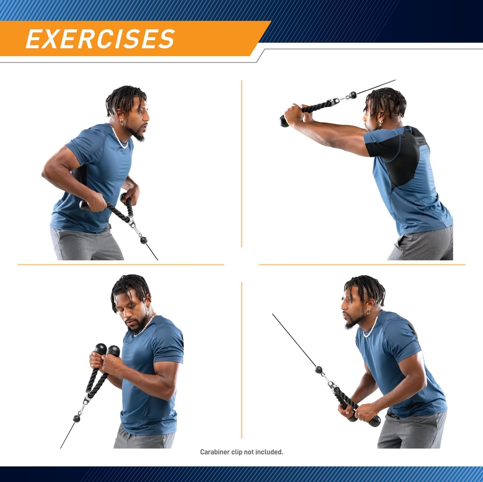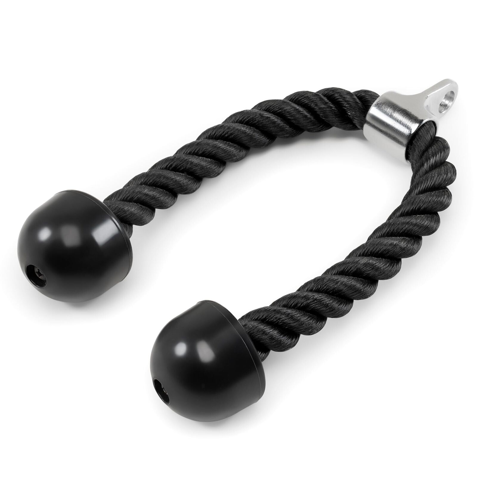 Take your upper body workouts to the next level with this premium dual-handle triceps rope, engineered for strength, durability, and precision training. Crafted from high-strength braided nylon, this fitness attachment is built to resist wear, fraying, and stretchingeven under intense, repeated use. The thick, tightly woven construction ensures consistent tension and long-term reliability, making it ideal for demanding routines like triceps pushdowns, cable curls, hammer curls, and lateral raises. Featuring solid rubber ends with a smooth, ergonomic design, the handles provide a secure, non-slip grip that reduces hand fatigue and enhances control during every rep. One end includes a chrome-plated swivel attachment for seamless connection to most cable machines, Smith machines, or home gym systemsensuring smooth movement without twisting or binding. Whether you're building muscle, improving definition, or refining technique, this versatile accessory delivers professional-grade performance in a compact, easy-to-use design. Perfect for home gyms, commercial fitness centers, or personal training sessions, its a must-have tool for serious trainers and fitness enthusiasts alike.
