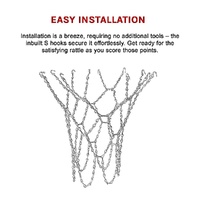 Installation is a breeze, requiring no additional tools the inbuilt S hooks secure it effortlessly. Get ready for the satisfying rattle as you score those points. Rekindle your passion for the game with every shot. This net is the ideal all-weather replacement.