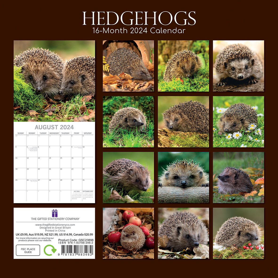 Hedgehogs - 2024 Square Wall Calendar Cute Pets Animals 16 Month Premium Planner