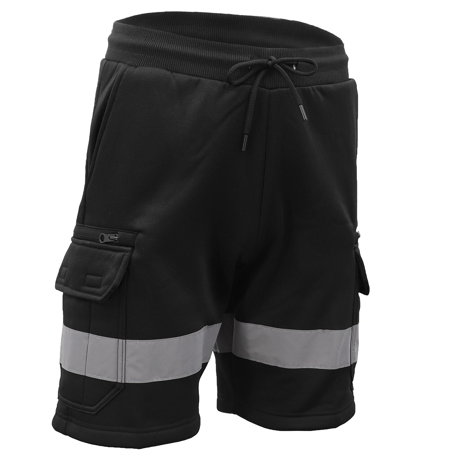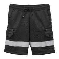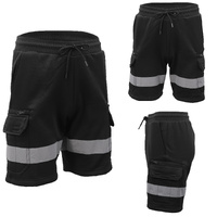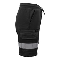 Hi Vis Fleece Work Cargo Shorts w Reflective Tape Workwear Tradie Utility Pants, Black, L