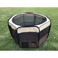 Our playpen comes with 2 doors for easy accessibility. With the mesh windows, it provides better ventilation and you can freely monitor your pets. The 2 large side pocketsprovide handy storage of accessories, plus a hanger for accessories such as water bottles. The roof is removable so you can sit in there and spend some quality time with your pets.It iseasy to set up and can be folded flat quickly for easy storage and makes your travel and pet management a lot easier. It is perfect to be used as a secure play area and your pets will love romping around outdoors without you having to worry about them escaping or getting lost.