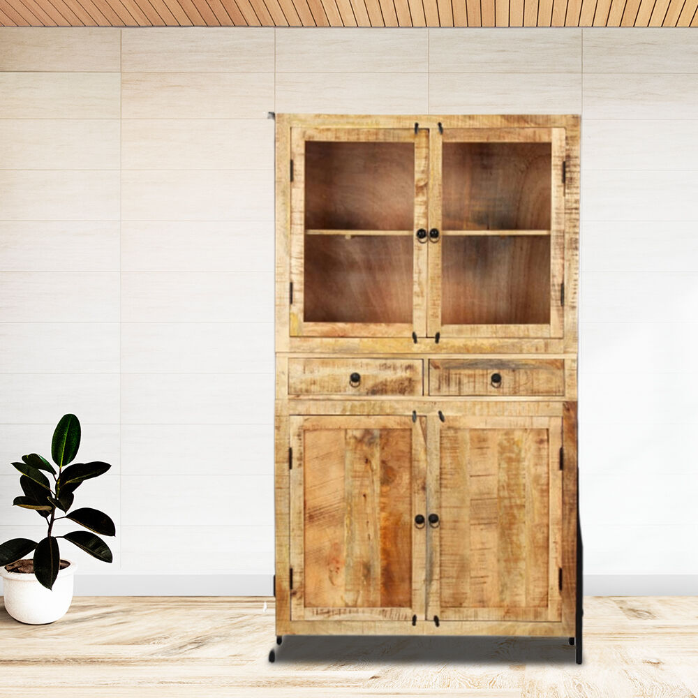 $893.93If you're looking for a simple touch of the rustic as well as industrial charm to add to your interior decor, our solid mango wood highboard will do the trick. Equipped with multiple compartments with doors and 2 drawers for various items, this sideboard will definitely be a practical and eye-catching addition in your home. The storage cabinet is made of solid mango wood that has been applied to a beautiful finish by polishing and lacquering, which exudes a refined look. The exquisite craftsmanship and the beautiful wood grains make every piece of furniture unique and slightly different from the next. Additionally, the powder-coated steel frame contributes to the stable and sturdy structure and adds to the wooden cabinet's industrial style as well. Important note: Variations in colour and wood grain makes each of our highboard unique and slightly different from the next; the delivery is random.