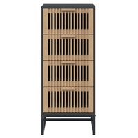 Are you hunting for a stylish highboard? This highboard adds a unique charm to your existing interior! Durable material: The engineered wood is of exceptional quality with smooth surface and also features strength, stability, and resistance to moisture.Ample storage space: The tall cabinet offers ample storage space for keeping your various daily essentials well organised and within easy reach.Wooden drawers: The cabinet features wooden drawers, which can protect your things from dust and dirt.Stable iron leg: The iron leg ensures sturdiness and stability.Displaying function: You can also place your favourite photos, decorations or flowers on top of the storage cabinet to enrich your life. Good to know:To make assembly as easy as possible, each product is delivered with a manual. Warning:To prevent it being overturned, this product must be used with the provided wall attachment device.