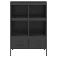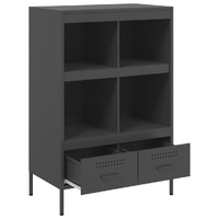 This sturdy highboard with industrial style makes a timeless and modern addition to your living room or bedroom. Stable material: The sideboard's frame is made of cold-rolled steel. Cold-rolled steel is a kind of low-carbon steel produced by a "cold rolling" method and processed at near normal room temperatures. Cold-rolled steel has a smoother surface, greater strength, and higher precision.Ample storage space: This cabinet provides ample storage space for keeping your magazines, books, DVDs, remote control and other small items well-organised and within reach.Adjustable screw feet: This cupboard is equipped with four adjustable screw feet to compensate for uneven floors, ensuring stability and balance.Easy to clean: The metal cabinet is easy to clean with a damp cloth and requires less maintenance. Warning:To prevent it from tipping over, this product must be used with the provided wall attachment device.