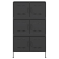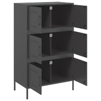 This sturdy highboard with an industrial style makes a timeless addition to your living room or bedroom. Robust and stable frame: Steel is strong, stable, and durable, making it an ideal choice for a wide range of applications, from furniture manufacturing to construction.Ample storage space: This highboard cabinet has 6 compartments, which provides ample storage space for keeping your various daily essentials well-organised and within easy reach. Easy to clean: The cupboard is easy to clean with a damp cloth and requires less maintenance.Practical door: Keep your space clutter-free by hiding your essentials behind the doors of the storage cabinet.Warning:To prevent it from tipping over, this product must be used with the provided wall attachment device.