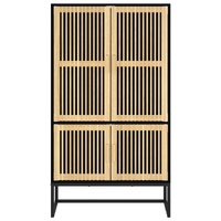 Are you hunting for a stylish highboard? This highboard adds a unique charm to your existing interior! Durable material: The engineered wood is of exceptional quality with a smooth surface and features strength, stability and resistance to moisture. The solid pine wood doors give the cabinet a natural and pleasant look while extending its service life.Stable feet: The iron feet of the sideboard ensure sturdiness and stability.Ample storage space: The storage cabinet offers ample storage space for keeping your various daily essentials well organised and within easy reach.Timeless design: This chic sideboard features clean simple lines and a minimalistic look that adds a timeless Scandinavian style to your current interior decor. Warning:In order to prevent overturning, this product must be used with the wall attachment device provided. Note:Each product comes with an assembly manual in the box for easy assembly.