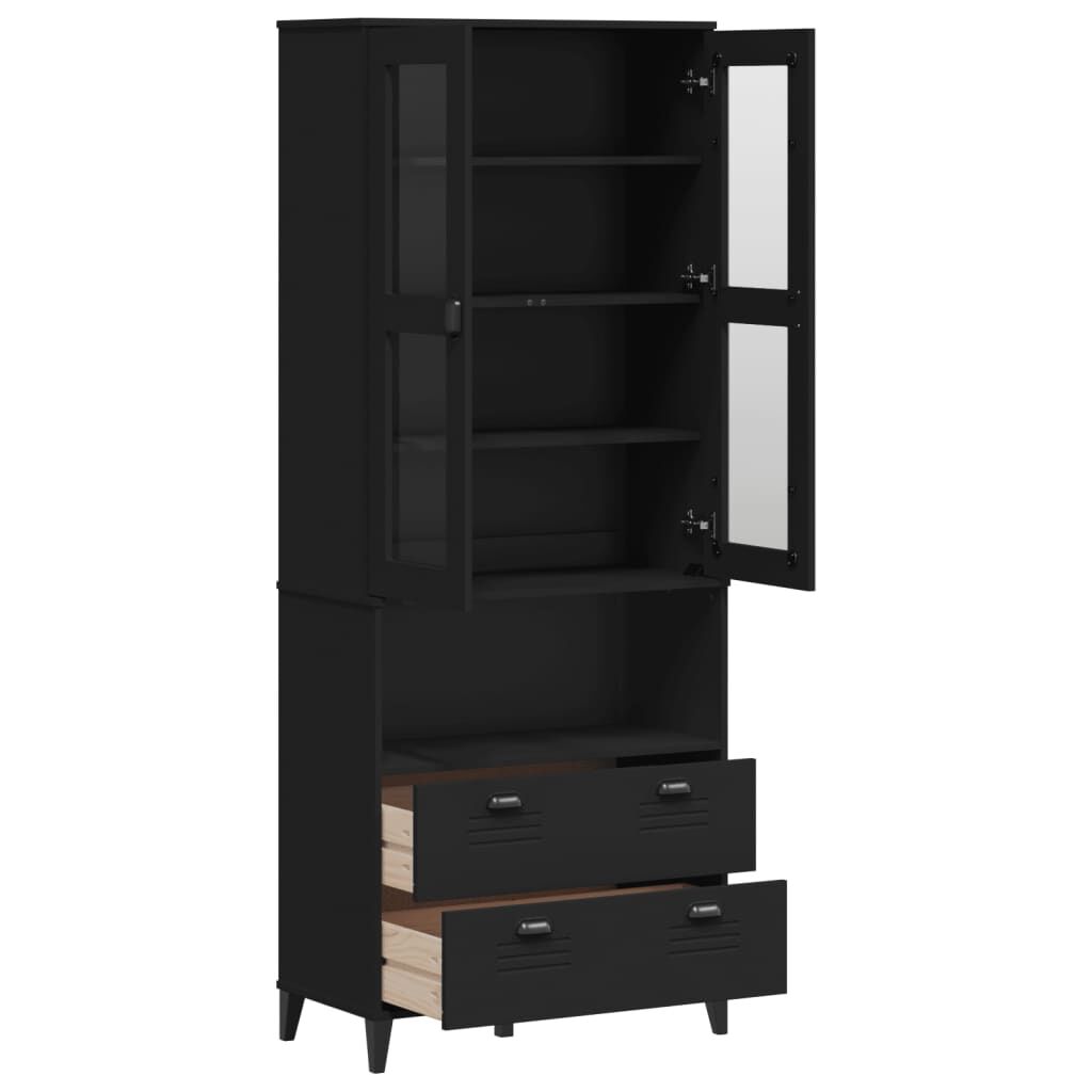 Are you hunting for a stylish highboard? This highboard adds an elegant charm to your existing interior! Solid pine wood: Solid pine wood is a beautiful natural material. Pine wood has a straight grain, and the knots give the material its signature, rustic look. Made of solid pine wood, the cabinet is durable and sturdy.Ample storage space: The sideboard provides ample storage space for keeping your various daily essentials well-organised and within easy reach.Glass doors: The doors of this wooden cabinet top have increased robustness and safety thanks to their tempered polished glass. And it allows you to see inside the top half to display items beautifully.Practical handles: The storage cabinet comes with handles that make it easy to open and close the cabinet while adding extra beauty. Warning:To prevent it from tipping over, this product must be used with the provided wall attachment device.