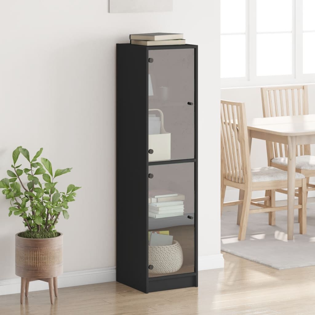 Are you hunting for a stylish highboard? This highboard adds an elegant charm to your existing interior! Durable material: The engineered wood is of exceptional quality with a smooth surface and features strength, stability and resistance to moisture.Ample storage space: The cabinet provides ample storage space for keeping your various daily essentials well-organised and within easy reach.Practical glass doors: Keep your space clutter-free by hiding small essentials behind the doors of the cupboard. In addition, the glass doors allow you to see inside the storage cabinet to display items beautifully. Good to know:To prevent it being overturned, this product must be used with the provided wall attachment device.