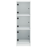 Are you hunting for a stylish highboard? This highboard adds an elegant charm to your existing interior! Durable material: The engineered wood is of exceptional quality with a smooth surface and features strength, stability and resistance to moisture.Ample storage space: The cabinet provides ample storage space for keeping your various daily essentials well-organised and within easy reach.Practical glass doors: Keep your space clutter-free by hiding small essentials behind the doors of the cupboard. In addition, the glass doors allow you to see inside the storage cabinet to display items beautifully. Good to know:To prevent it being overturned, this product must be used with the provided wall attachment device.