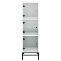 Are you hunting for a stylish highboard? This highboard adds an elegant charm to your existing interior! Durable material: The engineered wood is of exceptional quality with a smooth surface and features strength, stability and resistance to moisture.Ample storage space: The cabinet provides ample storage space for keeping your various daily essentials well-organised and within easy reach.Practical glass doors: Keep your space clutter-free by hiding small essentials behind the doors of the cupboard. In addition, the glass doors allow you to see inside the storage cabinet to display items beautifully. Warning:To prevent it from tipping over, this product must be used with the provided wall attachment device.