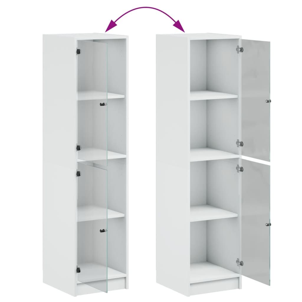 Are you hunting for a stylish highboard? This highboard adds an elegant charm to your existing interior! Durable material: The engineered wood is of exceptional quality with a smooth surface and features strength, stability and resistance to moisture.Ample storage space: The cabinet provides ample storage space for keeping your various daily essentials well-organised and within easy reach.Practical glass doors: Keep your space clutter-free by hiding small essentials behind the doors of the cupboard. In addition, the glass doors allow you to see inside the storage cabinet to display items beautifully. Good to know:To prevent it being overturned, this product must be used with the provided wall attachment device.