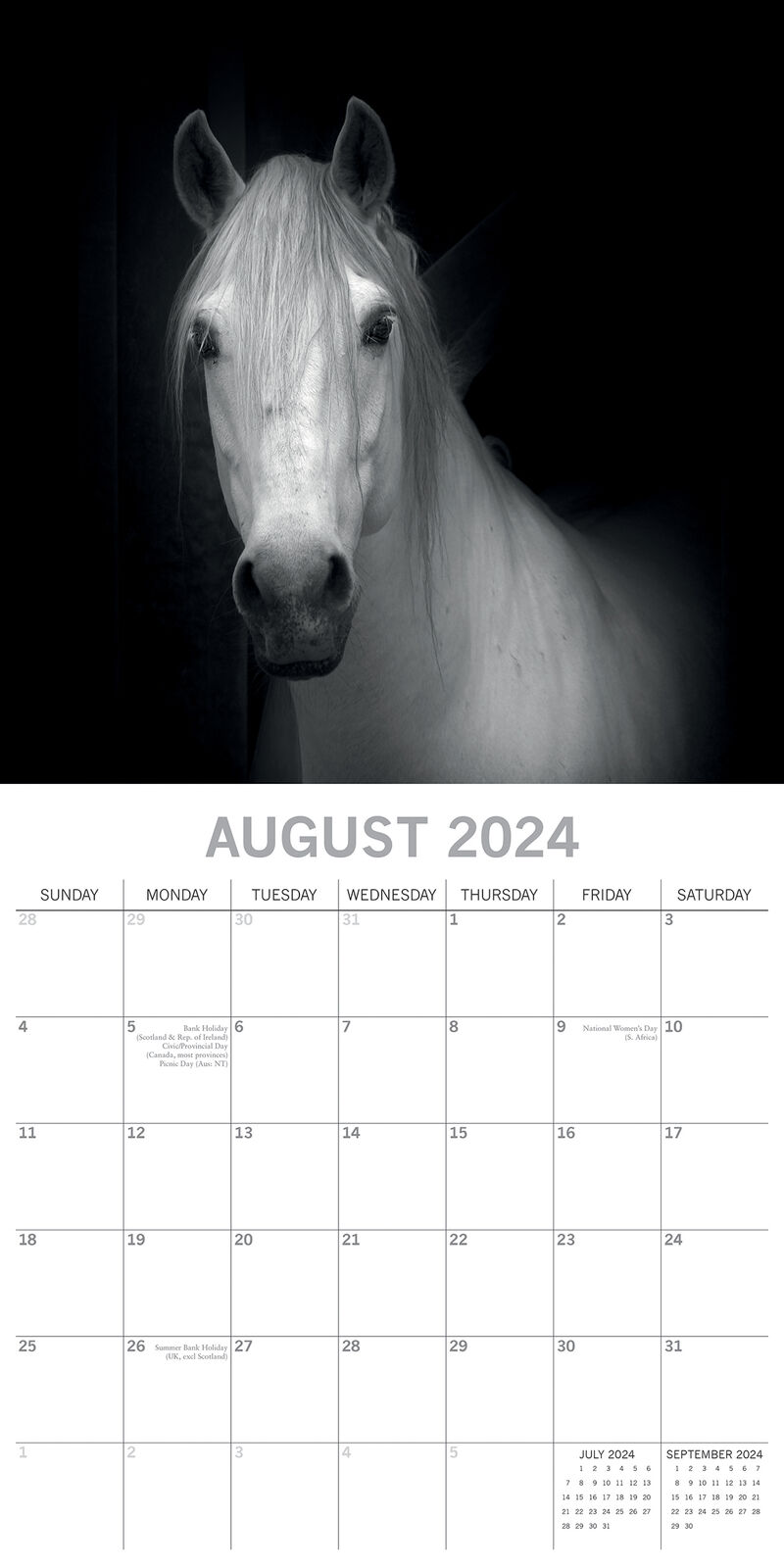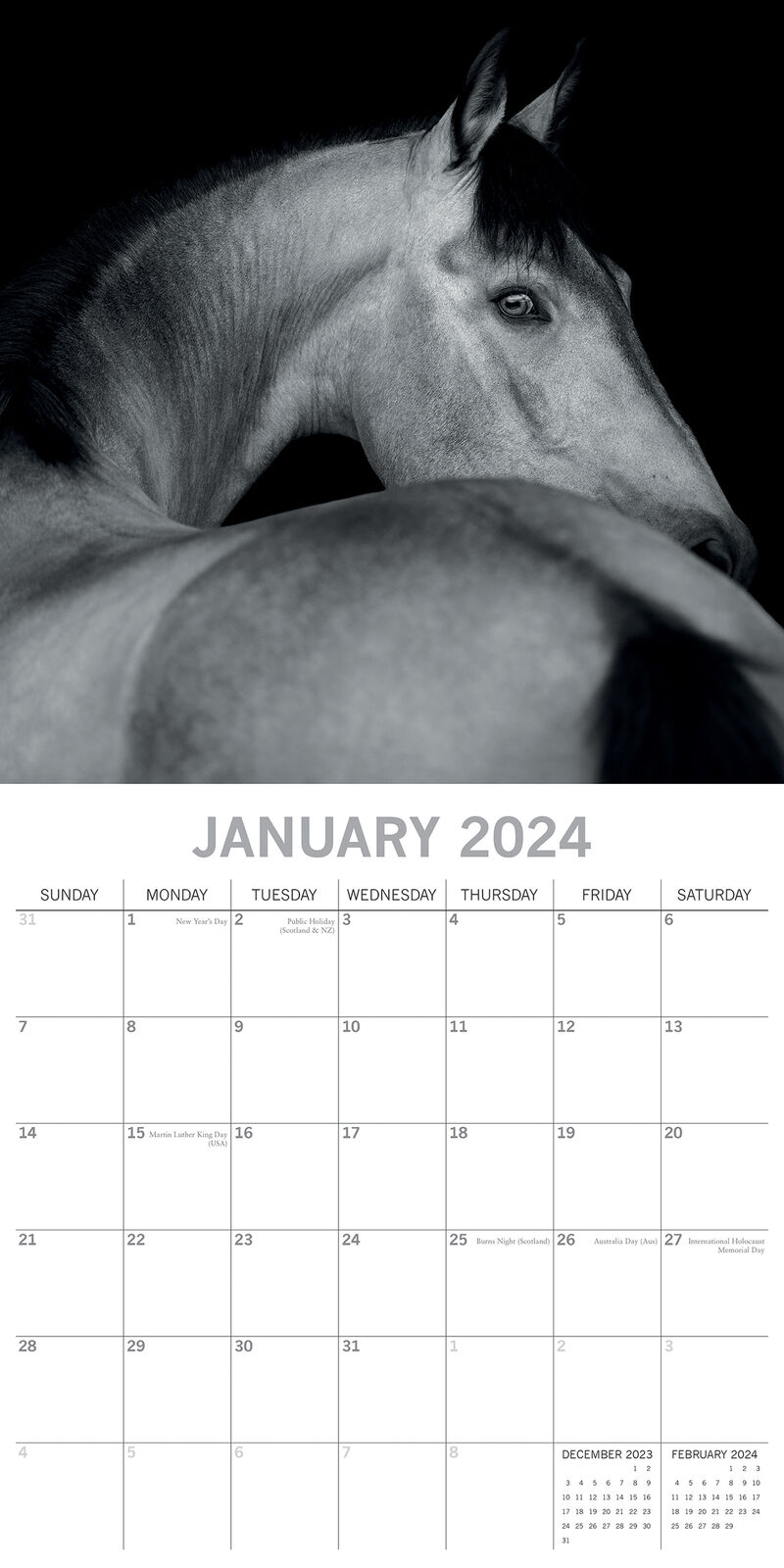 Horse Portraits - 2024 Square Wall Calendar 16 Months Black & White Planner Gift