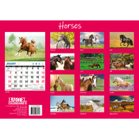 Horses - 2024 Rectangle Wall Calendar 16 Months Animal Planner New Year Gift
