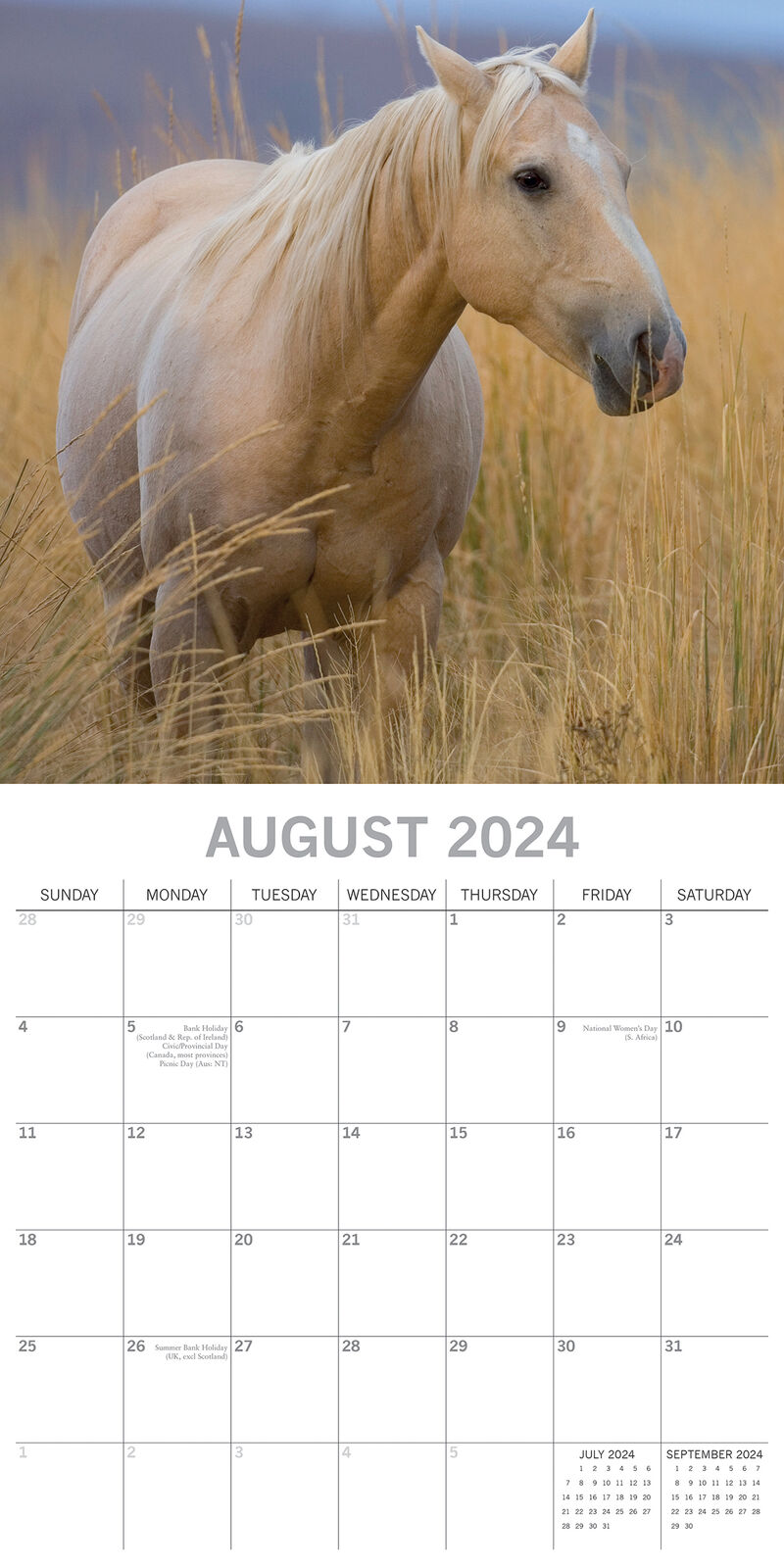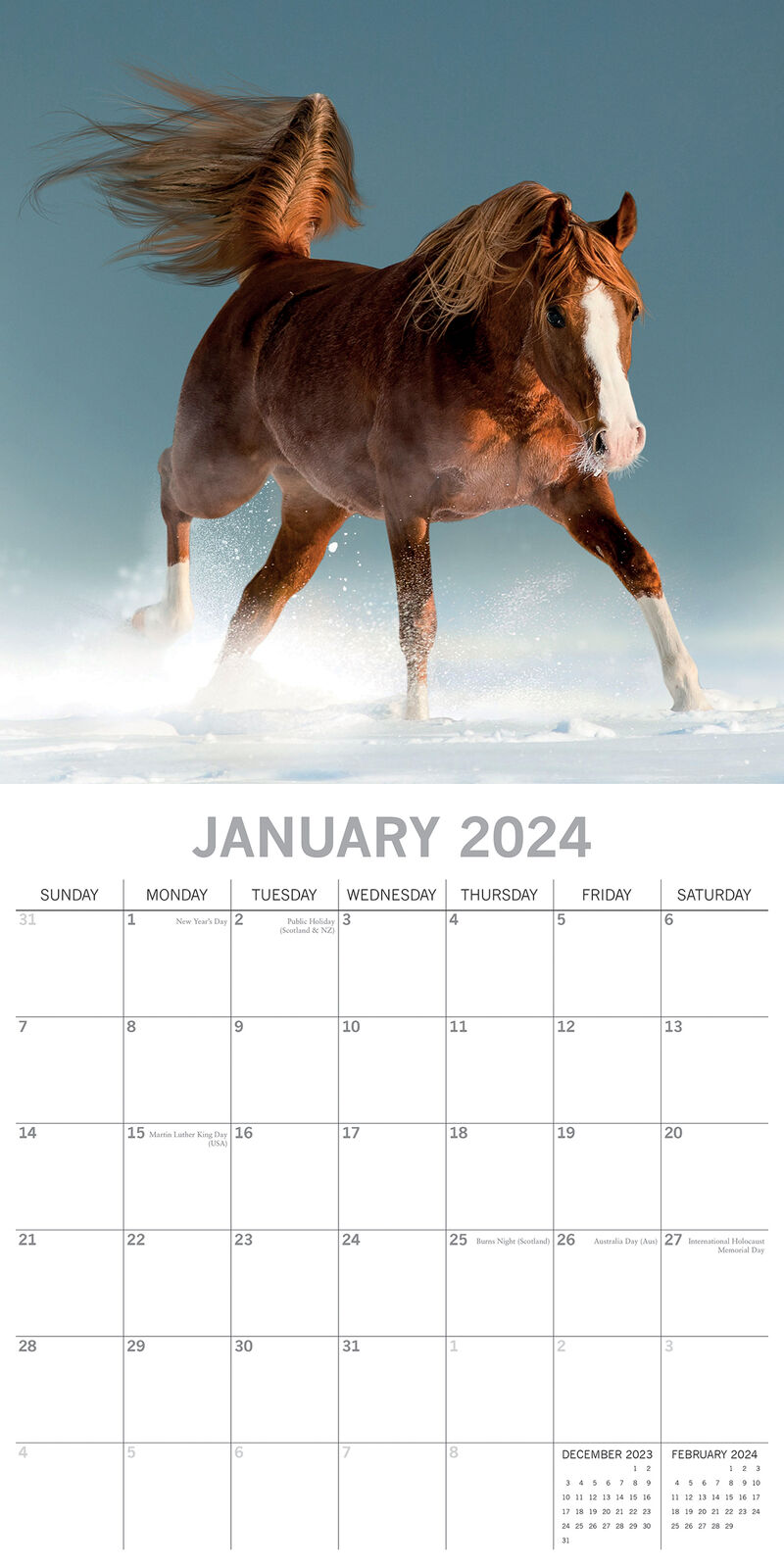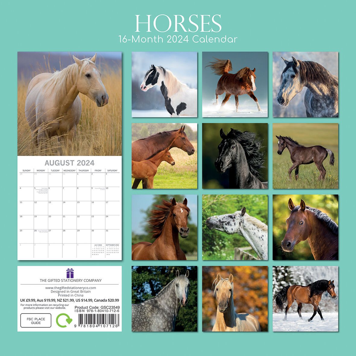 Throughout the ages, the horse has been essential to the economy and livelihood of the people, and also a source of joy and inspiration. Whether you are a seasoned rider or an admirer from afar, you are sure to enjoy this charming Horses mini wall calendar, full of splendid equine images. Brand New Calendar with Beautifully design, Sealed in Original Packaging, each calendar includes a large grid running from Sunday to Saturday. Publisher: The Gifted Stationery Co. Dimensions: 30cm (w) x 30cm (h) closed; 30cm (w) x 60cm (h) opened Time Span: 16 months (January to December 2024 monthly, September to December 2023 on-a-page) 2024 Square Wall Calendar featuring beautiful colour photographed images for every month of the year. Like most Wall calendars, this one comes with: