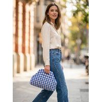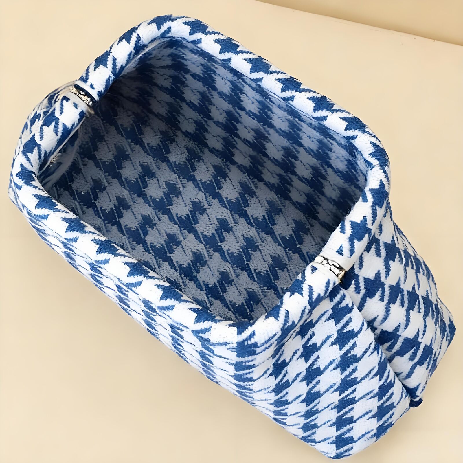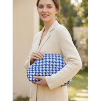 Houndstooth Knit Cloud Bag: Commute Daily Handbag, Portable Storage Clutch (Blue)